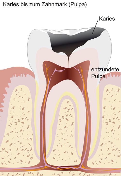 Die Ursache ist häufig eine tief in den Zahn reichende Karies. Zum Beispiel können unter einer undicht gewordenen Füllung Bakterien von dem Infektionsherd in das Zahnmark gelangen. In vielen Fällen schmerzt das erst mal nicht, sondern die Zähne werden nur etwas empfindlicher. Wird eine Infektion des Zahnmarks allerdings früh genug entdeckt, ist sie häufig heilbar (reversible Pulpitis).